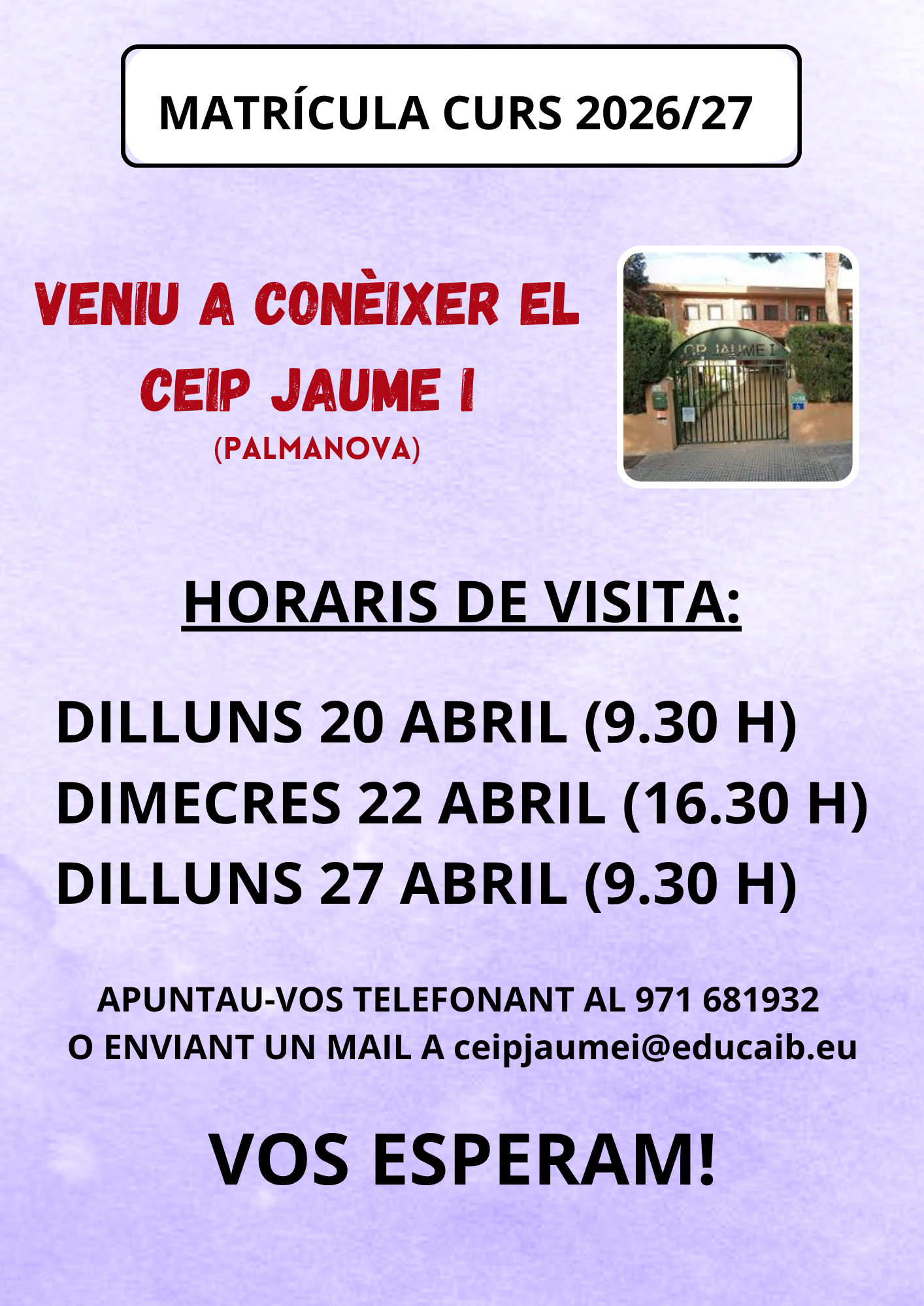 Portes Obertes matrícula curs 2026/27